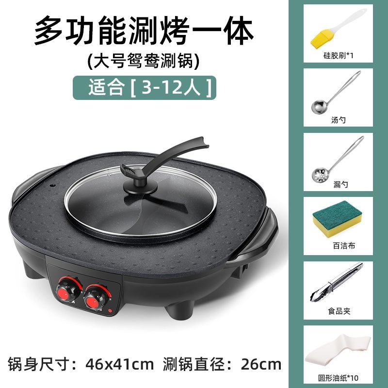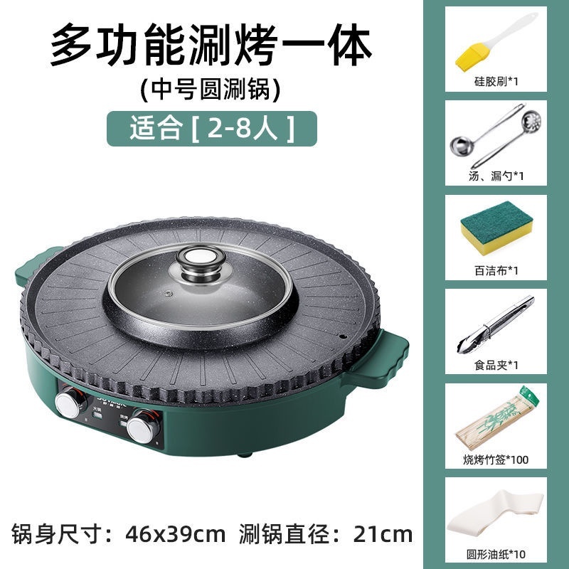 【精品】電燒烤爐鴛鴦鍋火鍋涮烤2-12人家用壹體鍋圓形烤肉機不粘鍋烤肉鍋