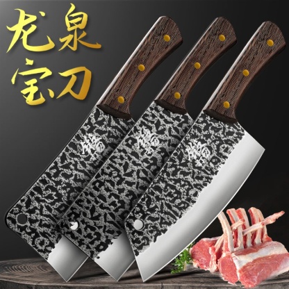 [精品]龍泉鍛打菜刀套裝家用切片刀超快鋒利廚師專用切菜刀砍骨刀具廚房