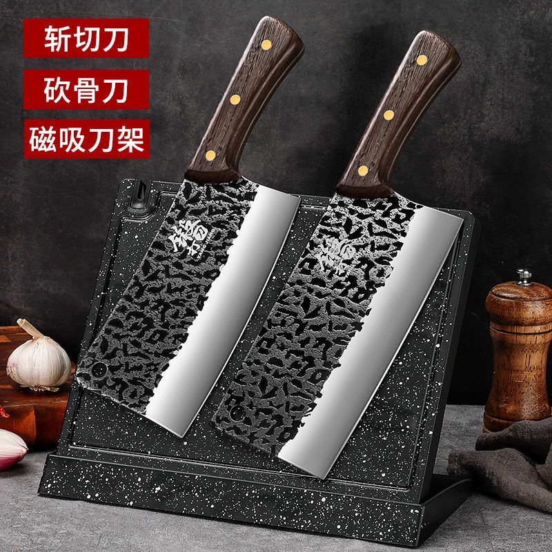 龍泉鍛打菜刀+骨刀+磁吸刀架