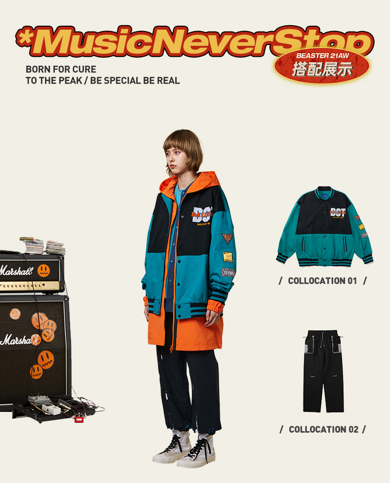 BEASTER小恶魔鬼脸复古连帽棒球服夹克拼色机能风潮流运动外套男